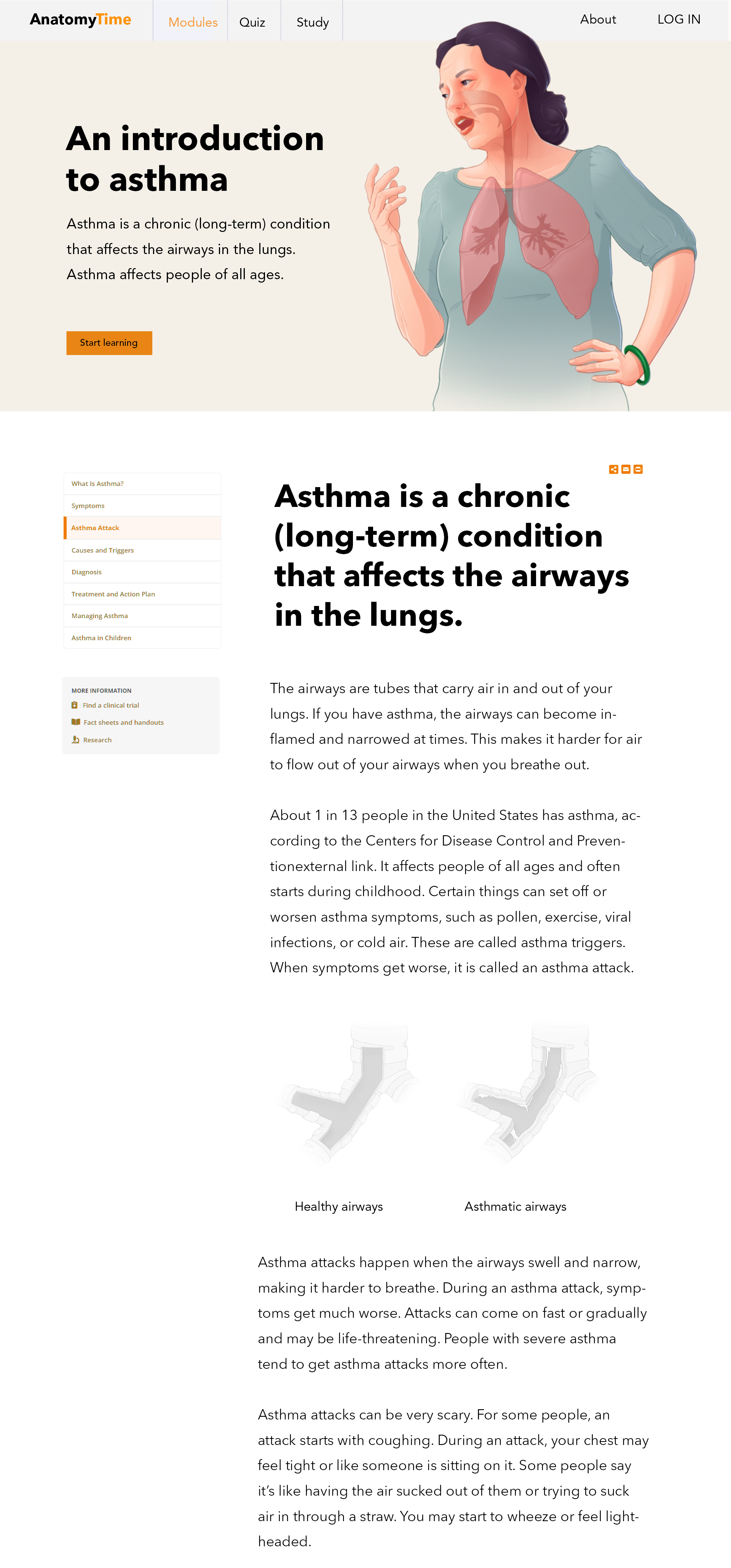 Medical illustration of a woman with lung anatomy